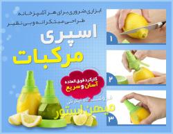 اسپری مرکبات محصول جدید و بی نظیری می باشد که طراحی بسیار مبتکرانه و حرفه ای آن قابل تحسین می باشد! با استفاده از اسپری مرکبات کافیست شما مقداری از پوست لیمو، پرتقال، نارنج و یا ... را بگیرید و اسپری را در داخل آن قرار دهید و سپس به راحتی با اسپری کردن آن آب لیمو یا ... را به صورت طبیعی و بسیار دلچسب استفاده کنید. این محصول به گونه ای طراحی شده است که به آسانی در داخل مرکبات قرار می گیرد و به راحتی قابل اسپری کردن می باشد.