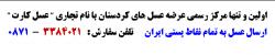 3- اطلاع دادن مبلغ - شماره فيش و آدرس مورد نظربوسيله تماس با " عسل كارت " از طريق فكس - تلفن( شماره هاي فوق ) - موبايل ( پيام كوتاه ) 09188724083 و يا ايميل kurdit@gmail.com